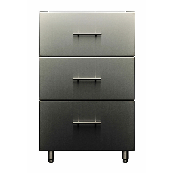 Mix and match your cabinets to suit your outdoor cooking needs with the Kalamazoo Signature Series cabinet range. This 24-inch base cabinet allows you to keep your outdoor kitchen tidy and organised with three separate drawers. The timeless design of this range elegantly complements your Kalamazoo grills and other Signature Series cabinets. The weather-tight design protects your items from the elements and the full-extension drawers keeps utensils and ingredients on hand while you cook and entertain. Installation is a breeze thanks to the uniform 30-inch depth and the stainless steel leveling legs. The robust marine-grade stainless steel construction is easy to clean and is built to withstand heavy use. This model is ideally suited for coastal regions or environments exposed to saltwater and ocean spray thanks to the additional corrosion-resistance. Handcrafted in Michigan, USA by expert craftspeople, this Signature Series cabinet is long-lasting and meticulously constructed to complete your dream outdoor kitchen.