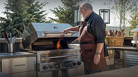 A motor-mounted rotisserie system expands the grill’s versatility even further, allowing meats to roast slowly and evenly while locking in natural juices and flavour. The addition of a convenient side burner with dual cooktop burners allows sauces, vegetables, and side dishes to be prepared alongside the main grill.