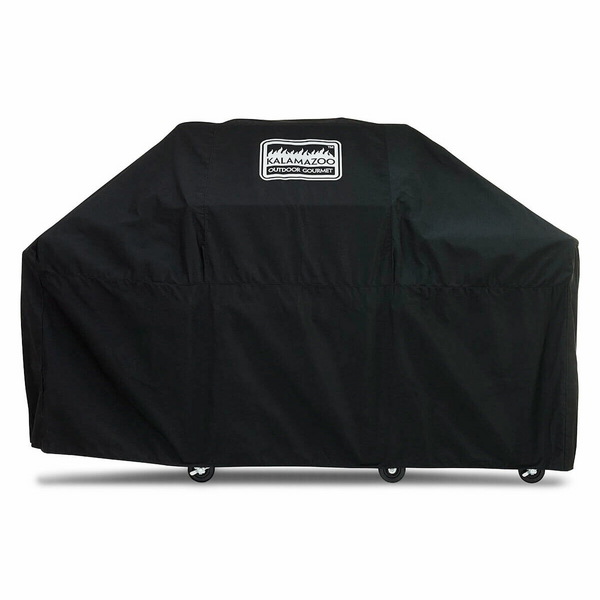 | Features | ● Tailored, custom fit for K750HB Grill ● Heavy-duty cover made from black Sunbrella® fabric ● Sheds stains, resists moisture and mildew ● Silver silk-screened Kalamazoo Outdoor Gourmet logo ● Covers entire hood and front of grill, clips in place for secure fit ● Please note that Sunbrella material will allow water to seep through over time or in a torrential downpour ● Made in the USA |