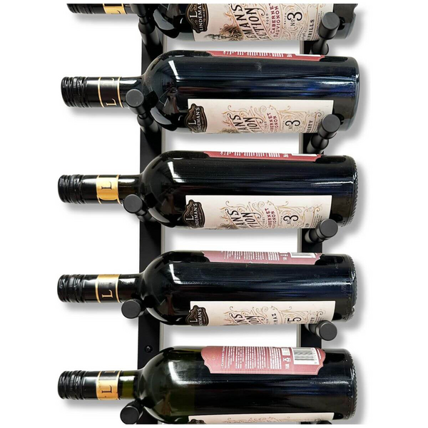 KingsBottle 9 Bottle Offset Peg Metal Rail Wall-Mounted Wine Rack RAIL0342-WPH03MBK