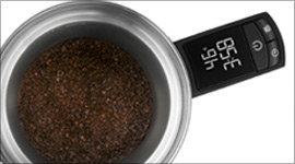 With French press coffee, there is typically a lot of guesswork involved in perfecting the ratio of water to coffee grounds. The Precision Press is designed to eliminate this guesswork, with a scale and timer integrated into the soft-grip handle. You can change the consistency of your grounds and the amount of water you use to produce two cups of coffee that are different in their flavour profiles but equal in their craft quality.