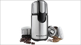 KitchenAid are seldom content with making appliances that serve only one purpose. This grinder is not only for coffee connoisseurs. It will make light work of nuts, peppercorns, and cumin seeds.
