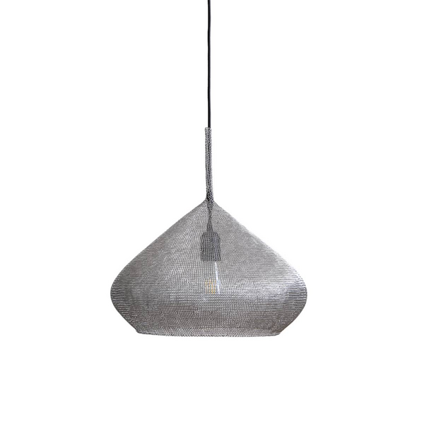 Kute Pendants has created an exquisite range of knitted steel pendant shades designed by Mark Eden Schooley. This shade comes in a braided stainless steel design in silver finish, or in braided powder-coated steel in black. From a floating sculpture by day, to a dynamic lighting centrepiece at night, the Kute Pendant Shade adds a new dimension to your home.