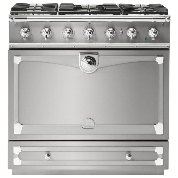 La Cornue Albertine 90cm Dual Fuel Freestanding Oven Brushed Stainless Steel with Polished Chrome ALB90DFSS-C