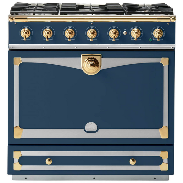 La Cornue Albertine 90cm Dual Fuel Freestanding Oven Winter Sky with Polished Brass ALB90DFWS-BN