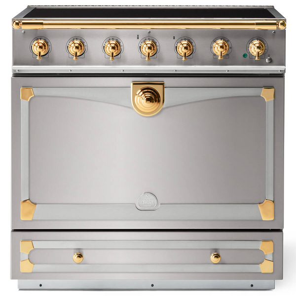 La Cornue Albertine 90cm Induction Freestanding Oven Brushed Stainless Steel with Polished Brass ALB90EISS-BN