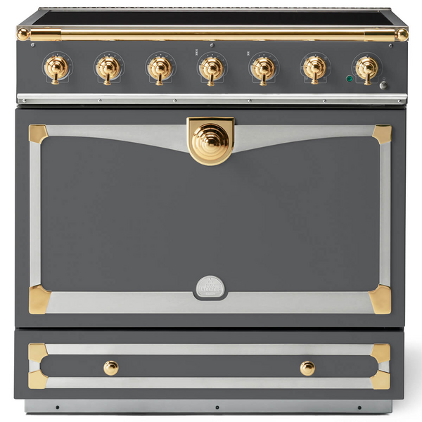 La Cornue Albertine 90cm Induction Freestanding Oven Graphite with Polished Brass ALB90EIGR-BN