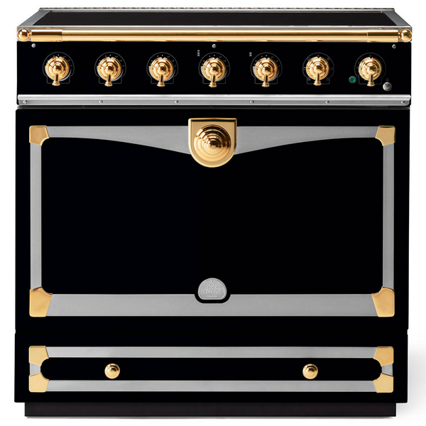 La Cornue Albertine 90cm Induction Freestanding Oven Shiny Black with Polished Brass ALB90EIBL-BN