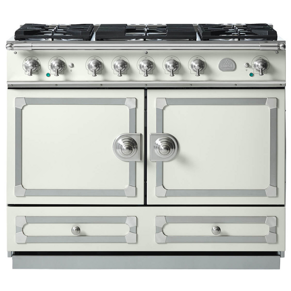La Cornue Cornufe 110cm Dual Fuel Freestanding Oven Pure White with Brushed Nickel CFE110DFWH-N