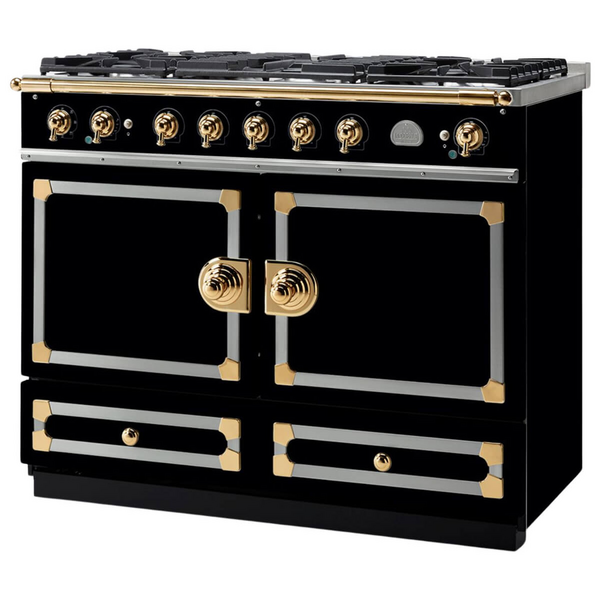 La Cornue Cornufe 110cm Dual Fuel Freestanding Oven Shiny Black with Polished Brass CFE110DFBL-BN