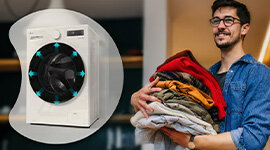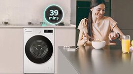 This washing machine washes a 3kg load of lightly soiled laundry in just 39 minutes, thanks to water jets that enhance both the wash and rinse cycles for efficient cleaning.