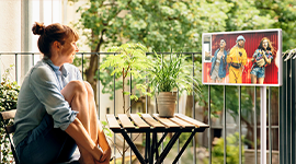 A built-in battery supports cordless use for extended viewing, freeing the screen from fixed power points and enabling true portability indoors or out. Thoughtful design touches, such as the magnetic remote, slim profile, and refined stand with concealed wheels, enhance everyday convenience while maintaining a clean, contemporary look. Audio performance is equally refined, with AI-enhanced sound tuning and immersive virtual surround effects that elevate movies, music, and dialogue clarity.