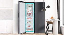 With a total capacity of 324 litres, it can hold plenty of frozen foods. Four drawers and three shelves make for easy organisation.