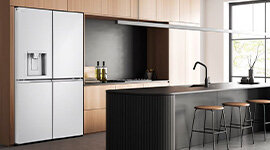 Innovation meets sophistication with the LG 637 litre French Door Fridge in matte white. Enjoy the convenience of a plumbed ice and water dispenser, complemented by the UVnano water dispenser with a built-in UV LED light to ensure purity and hygiene.