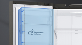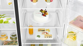 The French door configuration makes it easy to access what’s inside and comes in handy when packing away items after a big supermarket shop. You can organise your food and beverages with ease using the spacious compartments and intelligent interior configuration. If you need to make space for awkwardly shaped items, the retractable shelf enables you to make room for tall or large items—perfect for those who enjoy entertaining. There’s a handy ice and water dispenser located on the fridge door for convenient access, a great feature to have when entertaining, or to quench your thirst during the balmy summer months. The ultra-efficient Surround Cooling system delivers outstanding air circulation thanks to strategically placed air vents located inside your fridge. By providing your food with ideal cooling conditions, you can enjoy fresh food for longer.
