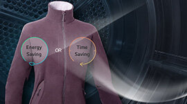 Sensor Dry technology prevents overdrying by monitoring heat exchange, moisture and air temperature - adjusting drying time and temperature accordingly.