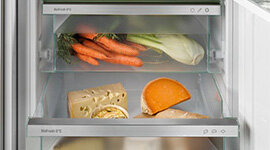The BioFresh Fruit and Vegetable Safe maintains optimal freshness at close to 0°c, combining constant humidity for extended shelf life. Ensure tender meat fillets and fresh milk stay at their best in the BioFresh Meat and Dairy Safe, set close to 0°c.