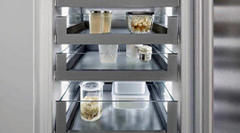 Sensitive food stays fresher for longer in Liebherr's BioFresh safes. A temperature of 0°c provides ideal storage conditions for meat or fresh milk, with higher humidity levels in the Fruit and Vegetable safe.