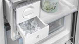 User convenience is at the forefront of its design. Features like the SoftSystem door closure and Slimline door handle ensure effortless operation and quiet functionality, even with frequent use. Together, they provide a seamless and gentle user experience, protecting items stored in the door while adding an elegant touch. The SoftTelescopic BioFresh drawers glide smoothly on telescopic rails, providing easy access to fresh produce while ensuring automatic, cushioned closure for optimal freshness.