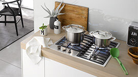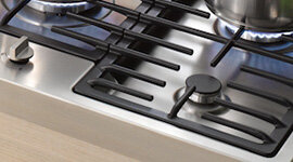 All Miele gas cooktops are equipped with GasStop functionality for maximum safety. If the gas flame is temporarily extinguished, e.g. because a pan boils over or due to a draught, a flame failure device will stop the supply of gas.