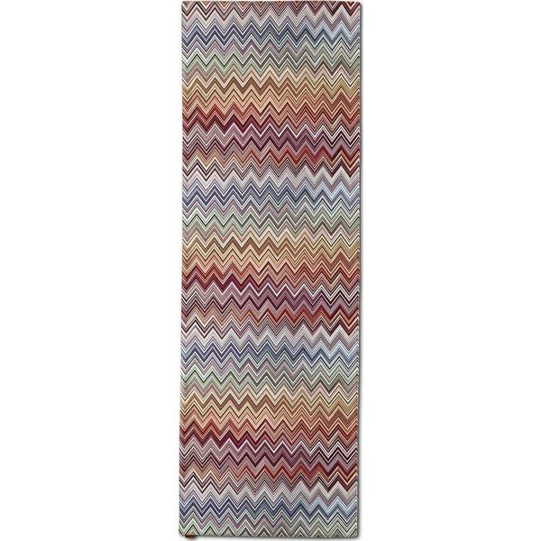 Andorra is the name given to this table runner in printed cotton, offered here by MissoniHome in the popular multicolored chevron pattern in two variants and packaged in an appealing, branded cardboard gift tube, with a knitted ribbon that can be used to roll up the runner.