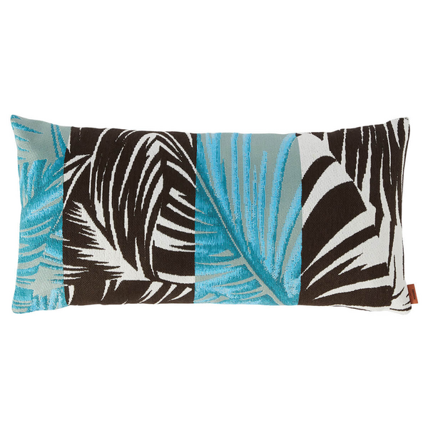 Drawing from the organic silhouettes of palm fronds, the Bali cushions feature a jacquard-woven pattern with a striking 3D embroidered effect. This layered texture not only adds tactile depth but creates visual movement by evoking the gentle sway of leaves in a tropical breeze. The contrasting colourways, from crisp black and white to refreshing azure (221) or earthy brown (38), offer a bold yet harmonious palette that pairs beautifully with contemporary outdoor furniture or natural surroundings.