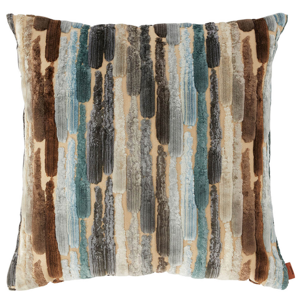 The Cometo cushion features a geometrical jacquard pattern in a rich Brown Multicolour (138) palette, woven with a painterly touch that echoes the fluidity of brushstrokes. Though geometric in form, the design feels organic in execution, layered with subtle gradients and a sense of movement that brings visual intrigue from every angle. A 3D effect in the weave adds further depth, enhancing the tactile quality of the surface.