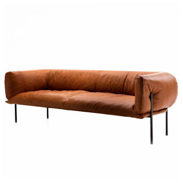 A collaboration that celebrates the art of leather working, the Rondo Collection features a sofa and chair designed by Lucy Kurrein for Molinari Living that was inspired by punching bags. Looking at household leather objects that “radiate durability and craftsmanship”, Kurrein’s collection made with top quality, thick leather that resembles the strength of a punching bag. The simple legs press into the leather on the sides, showing just how soft the cushions are, inviting you to wrap your arms around it like a boxer would if it were a bag.
