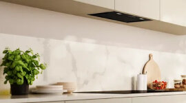 Designed to install flush within cabinetry, the hood remains discreet while delivering premium ventilation performance.