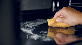 After the Sunday roast comes the cleaning. Unless you have pyrolytic self-cleaning that transforms all your spattering and drippings to ash. Once cooled, simply wipe off the rest and presto!
