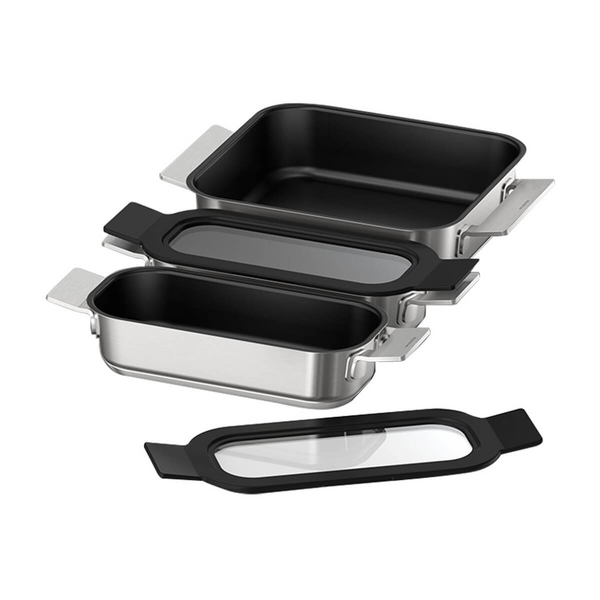 The NEFF Induction Cookware Set is a versatile addition to any kitchen, designed for use with NEFF induction cooktops. This set includes two saucepans with glass lids and a non-stick frying pan, providing the essentials for a variety of cooking tasks, from frying to stewing. Crafted from high-quality stainless steel, the cookware is built for durability and ease of use, featuring litre markings inside the saucepans for precise measurements. With compatibility across induction hobs, ovens, and dishwashers, this set combines practicality with premium performance for the modern kitchen.