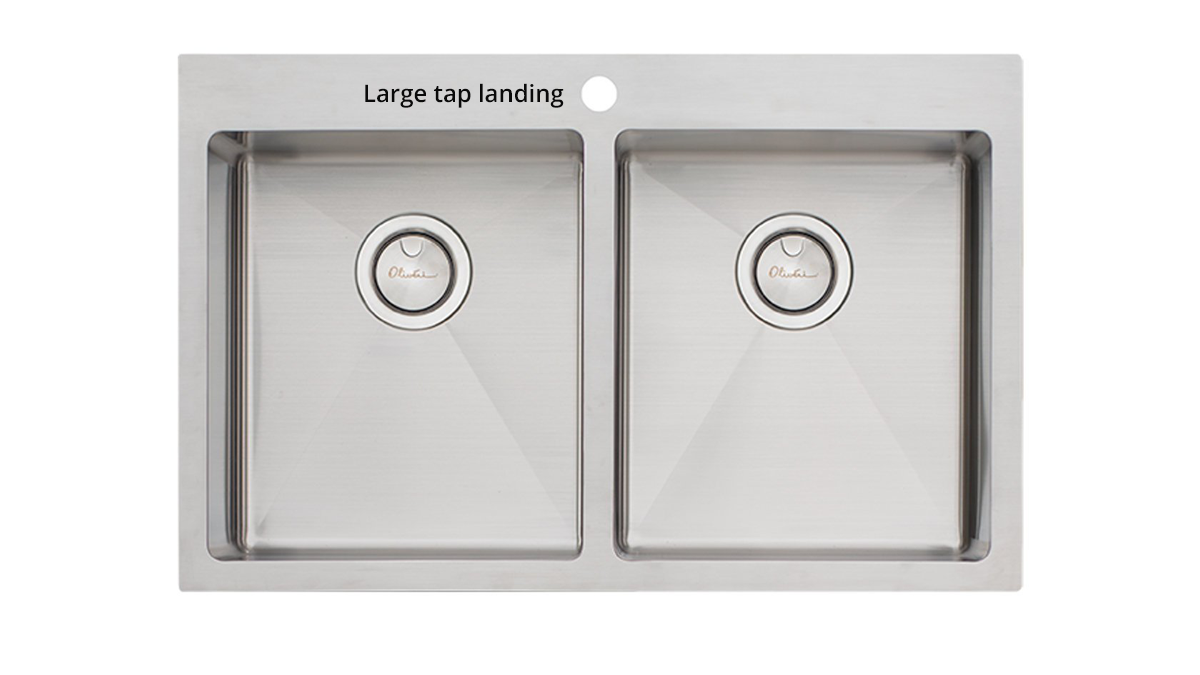 A standout feature is the generously sized tap landing. It’s supplied with a single tap hole but offers enough space to install a secondary tap or accessory, such as a water filter tap or soap dispenser. The bevelled edge provides a minimalist, low-profile finish that integrates seamlessly into modern kitchen benchtops.