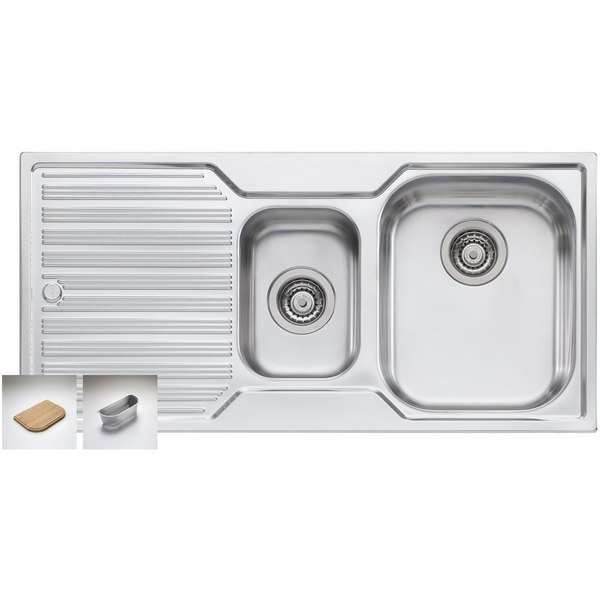 Oliveri Apollo 1 and 3/4 Bowl Left Hand Drainer Sink AP1412
