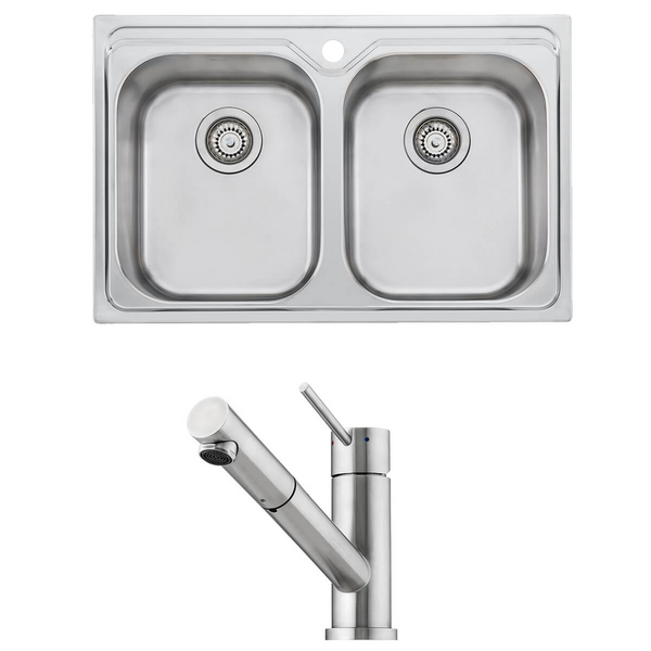Oliveri Monet Double Bowl Sink and London Chrome Pull Out Tap Pack LON580FCR-PMO70U