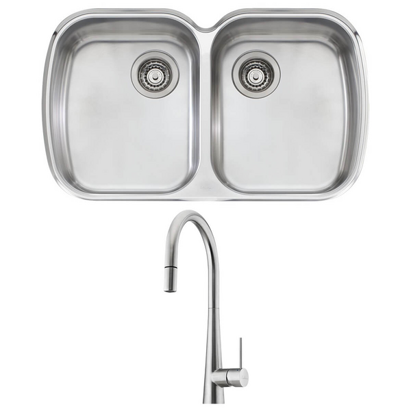 Oliveri Sonetto Double Bowl Sink and Essente Pull Out Tap Pack SS31625SN63TU