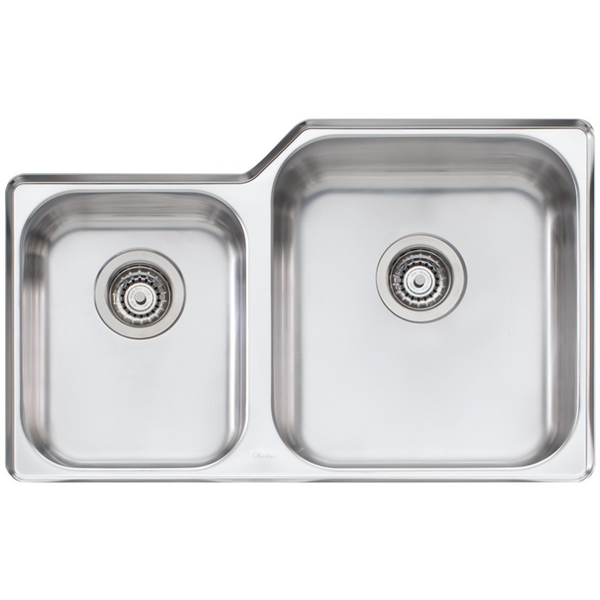 | Features | 2 piece, bowls & drainer seam welded Unique drainer design Generous bowl capacity Solid supporting bridge |