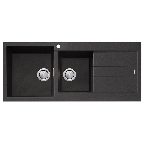 Oliveri Santorini 1 and 3/4 Bowl Topmount Sink with Right Hand Drainer Black ST-BL1511-OF