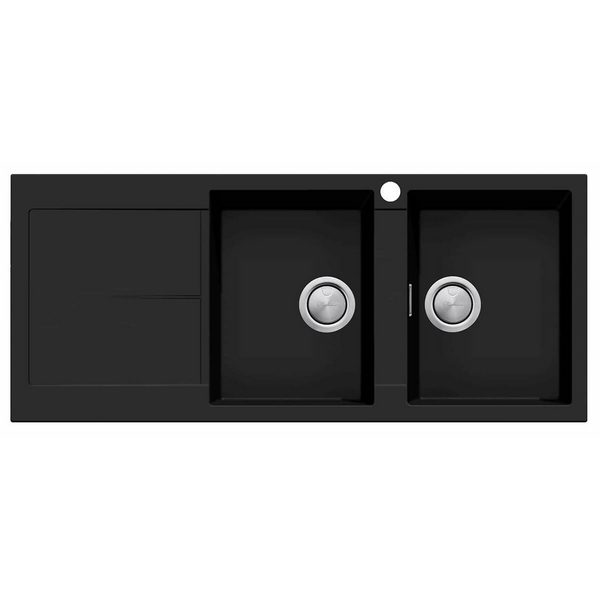Oliveri Santorini Double Bowl Topmount Sink with Left Hand Drainer Matte Black ST-MB1517-OF