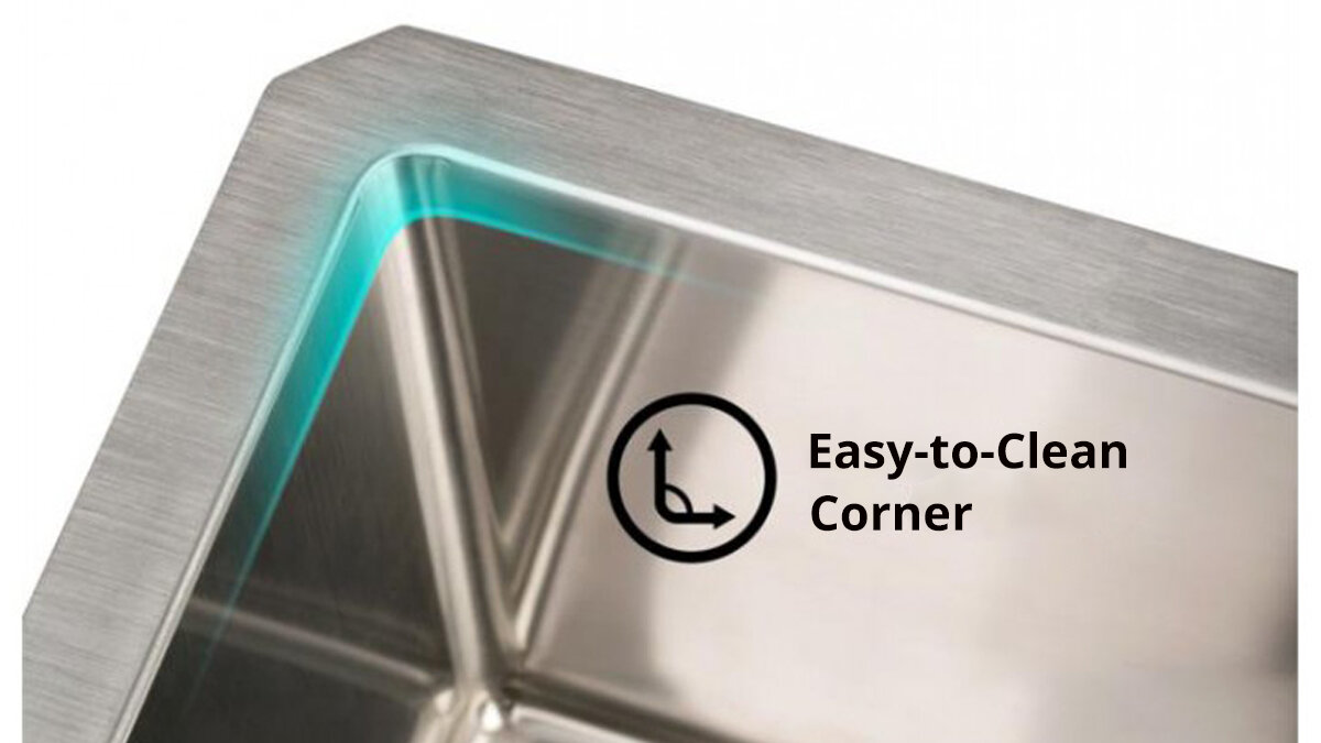 Sinks with sharp corners are prone to the formation of dirt traps. This sink features soft 25mm radius corners to make cleaning that little bit easier, with no places for grime to hide.