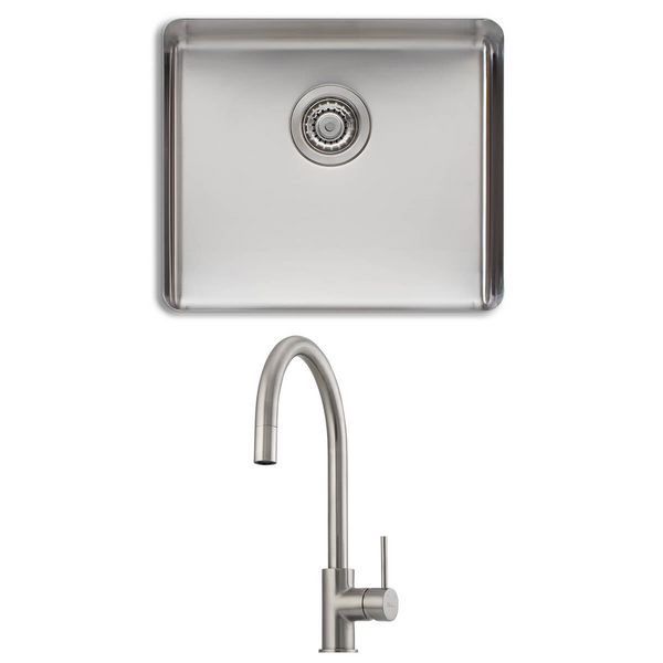 Oliveri Sonetto Single Bowl Sink and Venice Brushed Nickel Pull Out Tap Pack VE520FBN-PSN1050U