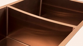 This copper-coated sink boasts a 1 and 1/2 bowl configuration, so you can wash in the larger bowl and rinse or do prep in the other. The wastes are located at the rear of the sink, allowing you to make the most of the space you’re given. Additionally, the soft 5mm radius corners will prevent the formation of dirt traps.
