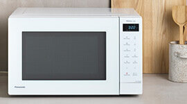 Its minimalist white finish paired with a sleek glass door makes the NN-ST64QW an elegant addition to any modern kitchen. Inside, a spacious cavity and large 340mm turntable accommodate large dishes with ease, providing flexibility for diverse cooking needs. For households looking to simplify their kitchen routine without compromising on quality or style, this microwave is an ideal solution.defrosting. Unlike traditional microwaves, which alternate power on and off, the inverter maintains a steady energy flow to preserve texture and flavour while avoiding cold spots or overcooked edges. Genius Sensor Cooking and Reheat automatically adjusts time and power based on the food type and steam level, helping you achieve perfect results with minimal effort.