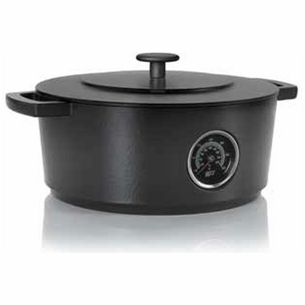 The robust Pitt Cooking Dutch Oven, crafted from enameled cast iron, exudes both strength and elegance. Forged from 100% recycled Dutch iron, including repurposed train rails and old bridges, it blends heritage with high performance. With a built-in thermometer, it offers precise control for poaching, braising, steaming, smoking, or frying. At 28 centimetres in diameter, it suits all heat sources and is oven-safe for added versatility.