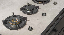 The floating grates feature four arms, providing a stable and secure surface for pans of any size. Crafted from premium double-enamelled cast iron, these grates ensure durability and elegance. A heat shield diffuses heat while doubling as a convenient catch tray, and a silicone ring hermetically seals out moisture and dirt, keeping your cooktop pristine.