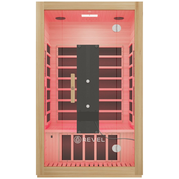 The Revel Kora 2-Person Far Infrared Sauna is an elegant wellness sanctuary, designed to bring the restorative power of infrared therapy into your home. Crafted from eco-certified Hemlock wood, its modern, compact design blends effortlessly into any interior space. The far infrared carbon heaters offer deep-penetrating warmth that targets muscles and joints, encouraging circulation, detoxification, and stress relief with each session.