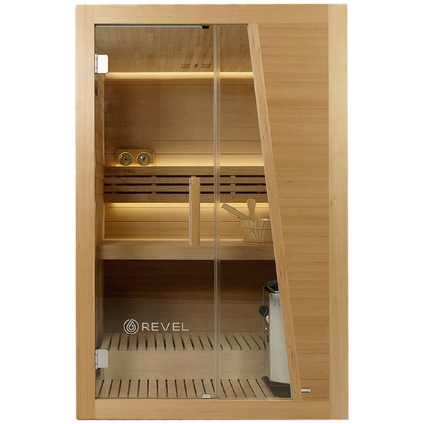 The Revel Tampere 2-Person Traditional Finnish Sauna with Step is a masterclass in compact luxury and time-honoured design. Inspired by the purity of Finnish sauna culture, it delivers a dry heat experience that promotes deep sweating, relaxation, and rejuvenation. At its heart is a premium Harvia heater, renowned for its quick, even heating and ability to maintain high temperatures essential for an authentic traditional sauna session.