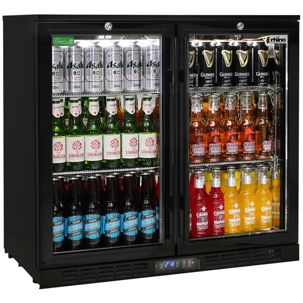 Rhino 208L Double Door Heated Glass Under Bench Beverage Centre Black SG2H-B-HD