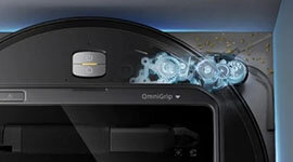 With a super-slim 7.98 cm profile, the Z70 fits under low-clearance furniture, aided by the RetractSense Navigation System that adjusts its sensors as needed. Paired with an unprecedented 22,000 Pa HyperForce suction system and the FlexiArm Riser brush, it excels at removing embedded dirt and hair while preventing tangles.