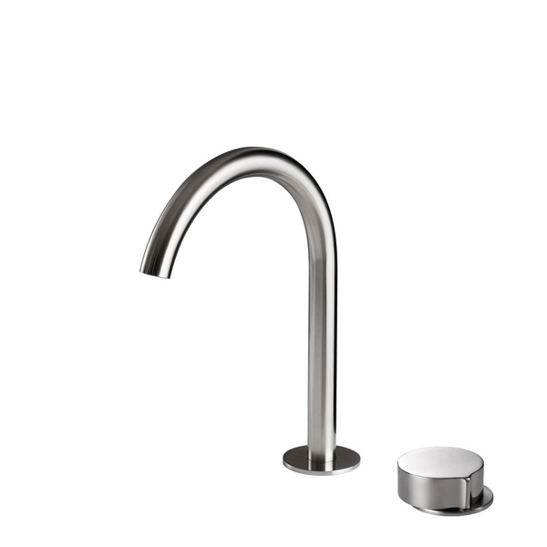 Eccentric Hob Mixer embraces quirky genius by incorporating an off-centre axis which allows the progressive reveal of an unexpected back-plate when the handle is turned to an open position.