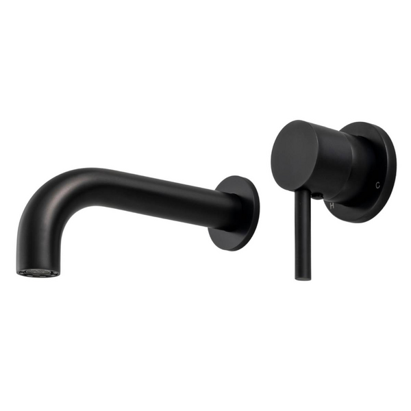 Designed and manufactured in Australia, the Tonic by Rogerseller Down Wall Mixer and Outlet features a cylindrical design on a slim backplate, where the delicate pin lever handle is positioned downwards.